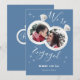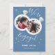 Engagement announcement card features engagement rings with couple's photo on it. On the back initial couple's names are inside the engagement rings.