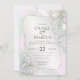 WEDDING ENGAGEMENT INVITATION | Shimmery lavender wispy pink luminescent background with luminous rose leaves , eucalyptus leaves, baby's breath and sparkly twinkles. Reverse is a complimentary coordinated colour. This design looks especially nice on the Pearl Shimmer paper choice. Customise text, font style, colour and size. We created this template is to make it easy for you to personalise with your own information. This is part of a complete Wedding Stationery Suite with matching wedding, baby shower and other event stationery. Original Artwork © by WhimsicalArtwork™.