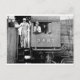 Vintage image of a steam locomotive cab with the engineer and the conductor or maybe the coal man.
