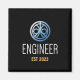 Design features engineer in big block letters and the year of graduation, which is customisable as the established date. Cog represents the engineering field. Celebrate your diploma, or your proud profession with this great engineering design.