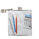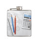 This design is perfect for any engineer. It is an engineers desktop with various pieces of office equipment. This engineers desktop design looks great on this Flask