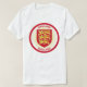 Very pleasant design showing the coat of arms of England within a circle shape made of the national colours.