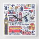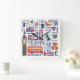 England Travel Doodles Square Wall Clock