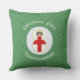 An angel wears the flag of England, or, St. George Cross, on this Christmas decor outdoor pillow. The English Angel flies for Christmas in the centre of s white circle of squiggly squares. A green background of squiggly squares surrounds it all. Add a name to personalise. Add the year to customise. You can just add your own text, if you wish.