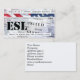Business card for a teacher of English as a second language with part of the map of the US and the US flag as background.