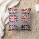 An English bulldog over an image of the Union Jack is an original illustration by artist Leah Wiedemer. This throw pillow is a perfect addition to the home decor of any Anglophile.