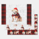 This cute English Bulldog is ready for the holiday season a red and black scarf and Santa cap, making this dog a real fashionista. This cute Christmas dog is paired with a plaid print in deep red and black on this set of gift wrap for the dog lover.