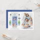 Announce your new address with our stylish family photo moving announcement featuring a English Bulldog, blue front door, welcome mat, slate sign, topiaries and a floral wreath set on a grey brick background. Flip our modern new home announcement over to view a coordination back for an extra special touch. Add your photo and information and you are all set to go.