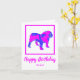English Bulldog silhouette in crazy hot pink and blue bright modern abstract pattern. Funny birthday message inside can be changed to anything you want. Personalize with name below the Happy Birthday sentiment.