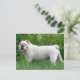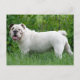 Aww...who can resist the face of an English Bulldog Pup? This postcard features a white Bulldog puppy dog walking in the tall green grass. He is ready to help you send greetings to your friends and family.