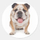 These fun canine stickers feature a portrait of an English Bulldog highlighted against a crisp white background.