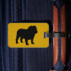 Bulldog Lover's Luggage Tag. English Bulldog silhouette with custom text for your name and address. Identify your bag quickly and keep your belongings properly labelled with this acrylic weatherproof accessory for your carry on or check-in bags. Available in various colours. A cool gift for dog lovers.