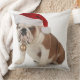 English Bulldog Wearing Santa Hat Cushion