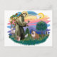 The patron saint of animals and a loved figures that crosses denominational lines, St. Francis is shown here with a brown and white English Bulldog. The figure of Saint Francis itself was adapted from Giotto's 14th century masterpiece and a new background was created by Jean Fitzgerald