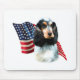 USA! America! Shout your pride with this awesome flag Patriotic background with this AKC dog breed English Cocker Spaniel in the forefront. Show your pride with this design on a t-shirt, mug, and much, much more!