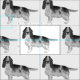 Pattern featuring Destei's original black and white colour illustration of a cute English Cocker Spaniel breed dog drawn in digital ink wash style.