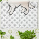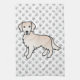 Destei's original cartoon illustration of a cute English Cream coat colour Golden Retriever breed dog. The background has a pattern of grey dog paw prints.