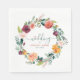 English Garden Flowers Wreath Custom Wedding Text Napkin