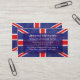 This is an awesome business card with a grunge English flag in the background. The colours are blue, white and red with a fun grunge texture. This card is great for an English language tutor or a teacher.