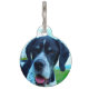 English Pointer Dog Tags.Made from 100% recycled steel for extra durability, these tags are guaranteed to never wear out. Available two sizes, easily design a one-of-a-kind tag that fits your pet’s personality! Dimensions: 2.2 cm diameter (small), 3.1 cm diameter (large) Designs and text printed in fade-resistant, full color ink .Metal key ring attachment to hang directly on collar included. Made in the USA