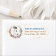 The left side of these return address labels feature an image of a spring flower wreath in colours of soft pink, blue, gold, green and cream. At the centre is a watercolor portrait of a black and white English Pointer dog. Tiny gold confetti gives a subtle sparkle to the background. Your custom text is in blue and brown gold at the right.