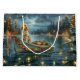 Set sail into the magic of the holiday season with this beautifully detailed illustration, showcasing a proud dog sitting in a festively decorated boat, gliding across a serene Christmas lake. The twinkling lights from nearby pine trees reflect off the water, casting a warm, festive glow that enhances the cosy ambiance. Ornaments dangle from the boat's sides, while glowing lanterns light the way, creating a scene that captures the true essence of Christmas warmth and joy. This nostalgic artwork brings a touch of holiday magic to any space, perfect for those who cherish the spirit of the season.