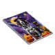 Embrace the Halloween spirit with this enchanting design featuring a cute dog in a witch hat surrounded by carved pumpkins. Perfect for adding a touch of spooky charm to your festive celebrations.