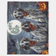 Unleash the spooky spirit with this eerie Halloween design featuring a pack of dogs under a dark, moonlit sky, surrounded by flying bats and glowing pumpkins. Perfect for those who love a touch of frightful fun with their furry friends!