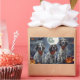 Unleash the spooky spirit with this eerie Halloween design featuring a pack of dogs under a dark, moonlit sky, surrounded by flying bats and glowing pumpkins. Perfect for those who love a touch of frightful fun with their furry friends!