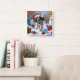 English Setter Running in Snow with Christmas Hat Square Wall Clock