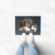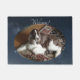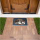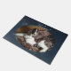 This is a doormat featuring an original photograph of a regal, liver and white English Springer spaniel with a starry blue background.