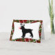 Fun English Springer Spaniel Card has a dog breed silhouette, with reindeer antlers and a bright red glowing nose. The background is a cheery holiday plaid with reds and greens. The inside reads, "Wishing you and your family a wonderful holiday season!" Personalise the message to your own easily. Cute dog lover Christmas cards.
