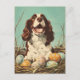 Celebrate Easter with the lively and affectionate English Springer Spaniel in this vintage-style postcard. Featuring the beloved dog surrounded by colourful Easter eggs, blooming spring flowers, and festive seasonal accents, this design is perfect for Spaniel lovers, collectors, and fans of nostalgic holiday art. A delightful keepsake to share Easter joy.