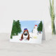 Unique English Springer Spaniel winter wonderland design. English Springer Spaniel with a bit of snow on his nose and a pool of drool at his paws. Irritated snowman looks on. To ward off the cold the English Springer Spaniel has on a scarf and hat that are the colours of his country.