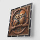 This appealing square wall clock features a highly dimensional, rustic illustration of two owls perched closely together on a large, curving wooden branch. The entire design is rendered in earthy brown and tan tones, strongly suggesting a deep carved relief or Engraved Wood Look. The owls are framed by a large, circular wooden tree branch. The background includes a large, light brown full moon shape and stylized cherry blossom flowers scattered around the branches. The small, three-dimensional embossed text "BESTIES FOR LIFE" is carved across the lower center. The clock face features a simple clock face border with large, white, numbered tick marks (1 to 12) integrated into the outer frame. The artwork is surrounded by a thick, dark brown decorative border that resembles a black wood frame.