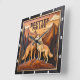 Engraved Wolf Pair Mountain Embrace Square Wall Clock