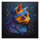 A captivating portrait capturing the beauty of a cat's head looking in style. This abstract artwork features embossed lines in hues of blue, orange, and purple, set against a dark shady blue background. Discover the mystery of this artful feline gaze, adorned with subtle embossed colour elements.