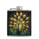 Enigmatic Peacock in Verdant Plumage Hip Flask