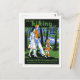This postcard is a reproduction of a vintage poster for hiking at Indiana State Parks, made by the Indiana Department of Conservation. The poster is in the collection of the Indiana State Library.