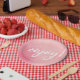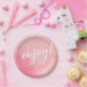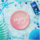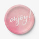 Enjoy party plate pink watercolour handwritten