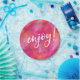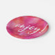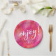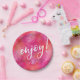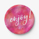 Enjoy party plate pink watercolour handwritten