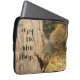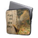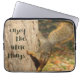 This laptop sleeve features a photograph of a cute squirrel coming down a tree and the words "enjoy the little things".