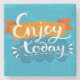 Enjoy today - positive quote, handwritten calligraphy on blue grunge background and orange ribbon. Vector typography design for cards, t-shirt, posters and social media content. | Bigstock® - All Rights Reserved.