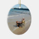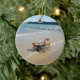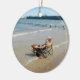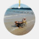 This is a personal ornament of my husband relaxing at the beach with his constant companion and best friend, our dog. It was a very warm day at the end of summer and he put his beach chair in the water with the waves washing over them. Man's and woman's best friend is often their dog, who loves them unconditionally and would sacrifice their life to save them.