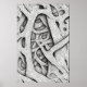 This design showcases a mesmerising organic and fibrous structure that resembles an intricate neural network or interwoven root system. Rendered in high-contrast black and white, the composition emphasizes the flowing, sinewy lines that crisscross and interlace in a biomorphic, abstract pattern. The overall appearance is evocative of biological textures, resembling both cellular frameworks and anatomical webs, fusing elements of science and surrealism.