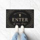 Greet your guests with this spooky-chic Halloween doormat! Design features a black background with your name curved across the top, and "Enter if you dare" beneath. A filigree border and a skeleton accent complete this spooky Halloween design.