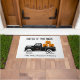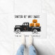 Enter if You Dare Spooky Halloween Family Name Doormat - Warn your halloween guests this halloween season with our spooky Halloween Doormat. Mat features a black halloween pick up driven by a scary skeleton, riding along with a spider and hauling three jack o'lanterns. Text reads "Enter if You Dare" with your name. So fun and spooky!