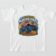 playful design for a monster truck shirt for kids, featuring a large, brightly coloured monster truck with oversized wheels.