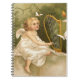 A vintage angel artwork featuring an angel playing a musical instrument and watching butterflies.