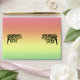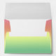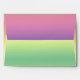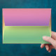 Two graphic images of trees with weeping branches, bracket the Addressee section of envelope. Rainbow colours cover entire envelope with green, yellow, orange, red and pink on the front.